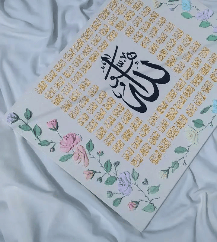 Handmade 3D Floral Calligraphy | Textured Islamic Wall Art Canvas Where Divine Names Blossom into Art.