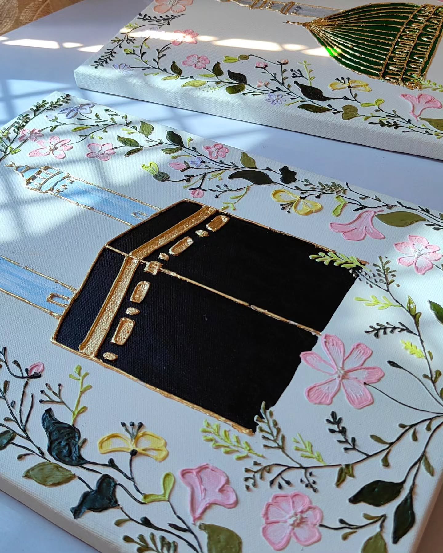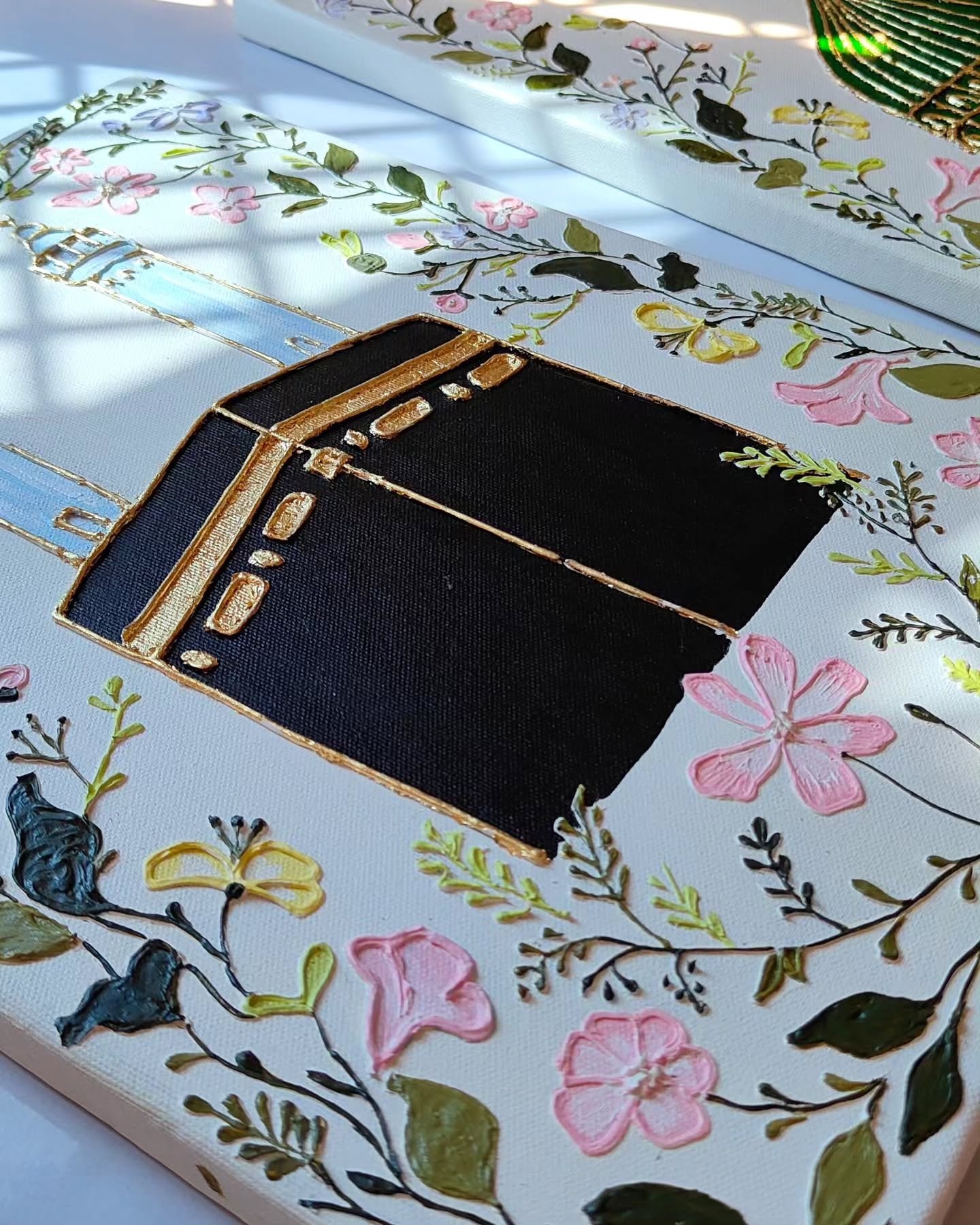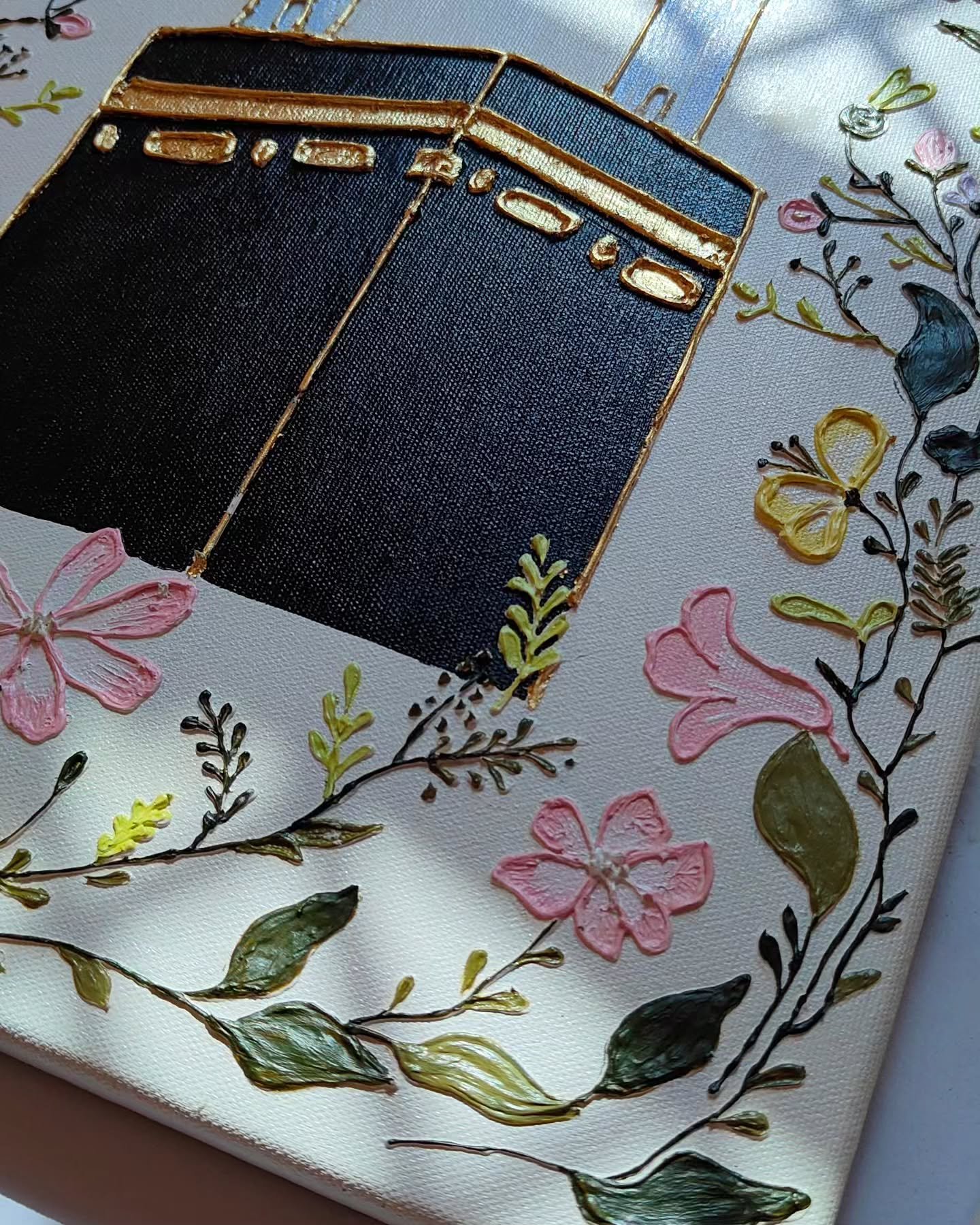 3D Floral Kaaba Wall Art 🕋 | Textured Makkah Painting with Gold Relief | Luxury Islamic Home Decor & Hajj Gift