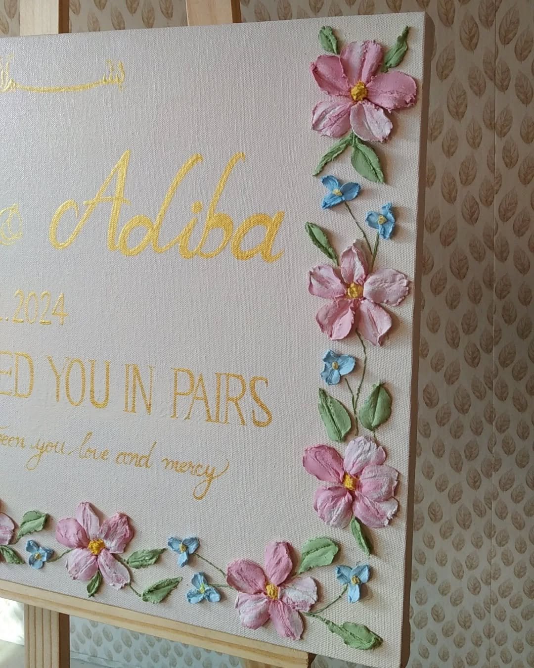 Personalized Islamic Wedding Gift | Custom 3D Floral Nikah Canvas with Names, Date & Quran Verse | “And We Created You In Pairs” Art