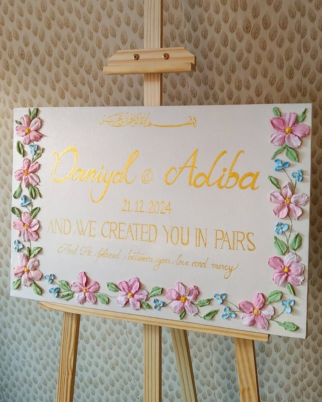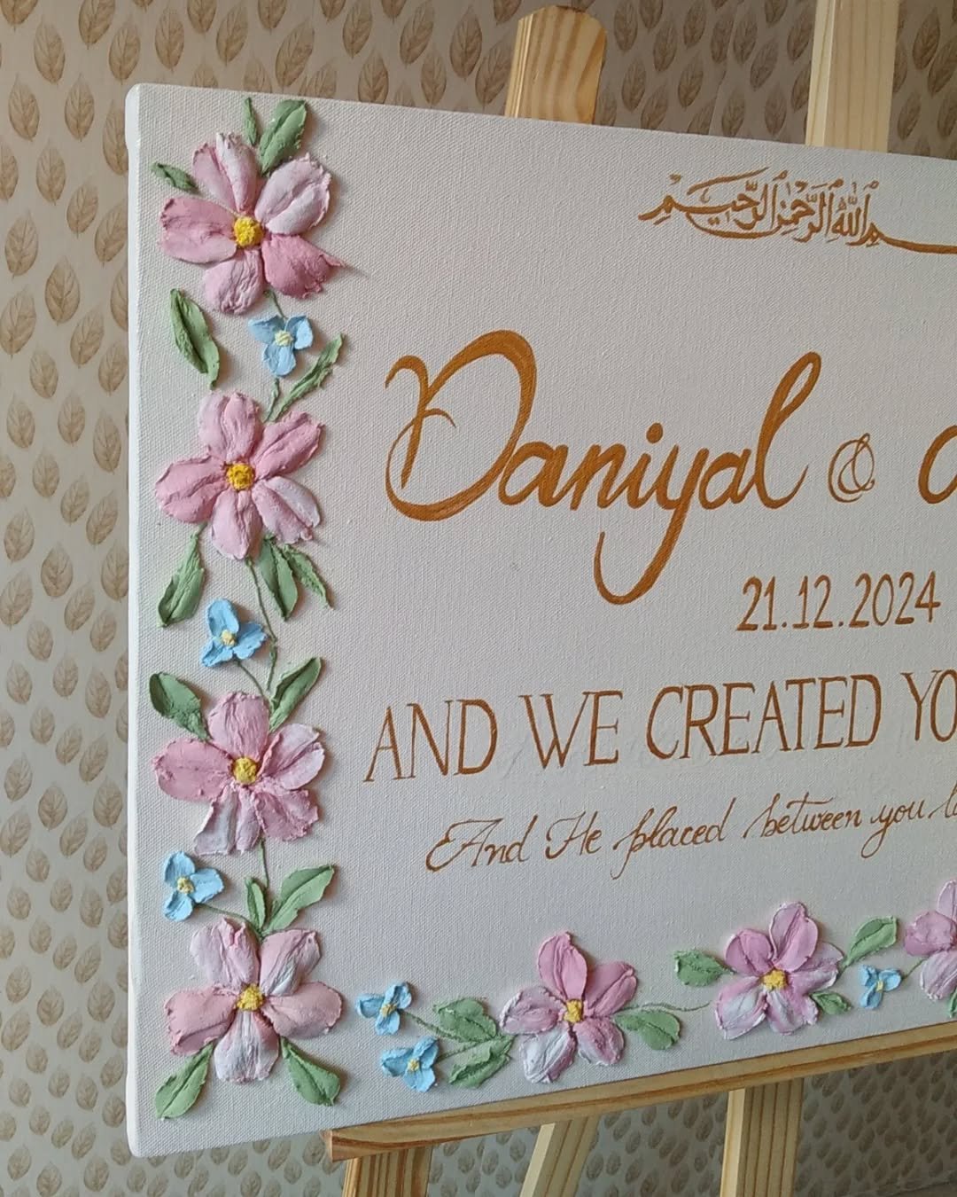 Immortalize the blessed beginning of a life together with this exquisite, hand-crafted wedding canvas. More than just a gift, this is a cherished heirloom, beautifully capturing the spiritual essence of a Nikah (Islamic marriage).
