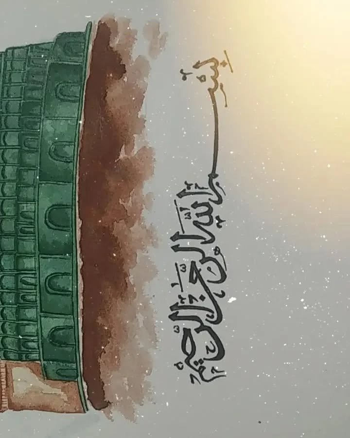| Elegant Calligraphy | Features “Bismillah-ir-Rahman-ir-Rahim” in a classic, clear script, anchoring the painting with the essence of all sacred beginnings. |