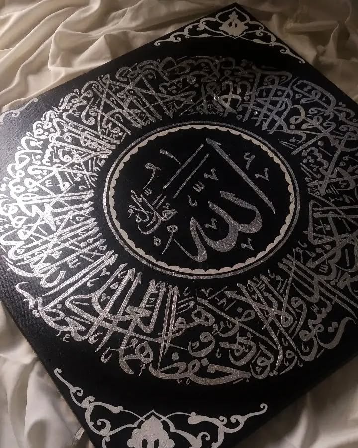 Grace your space with the name of Allah surrounded by His Words 🕋 — Ayat-ul-Kursi in silver, where protection meets elegance.